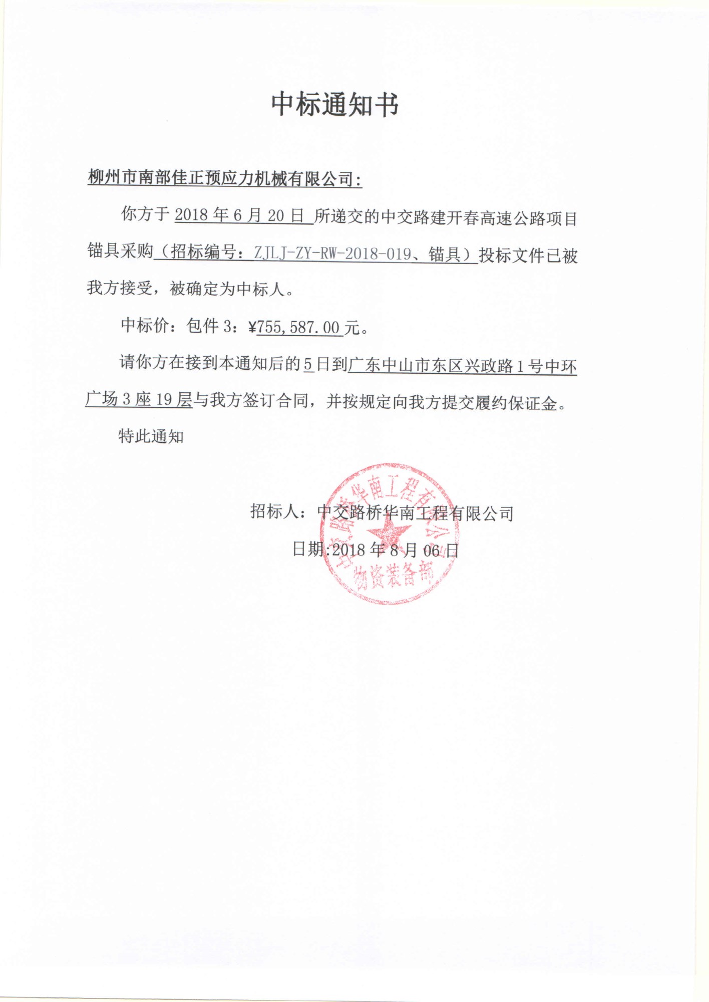 開春3包中標(biāo)通知書